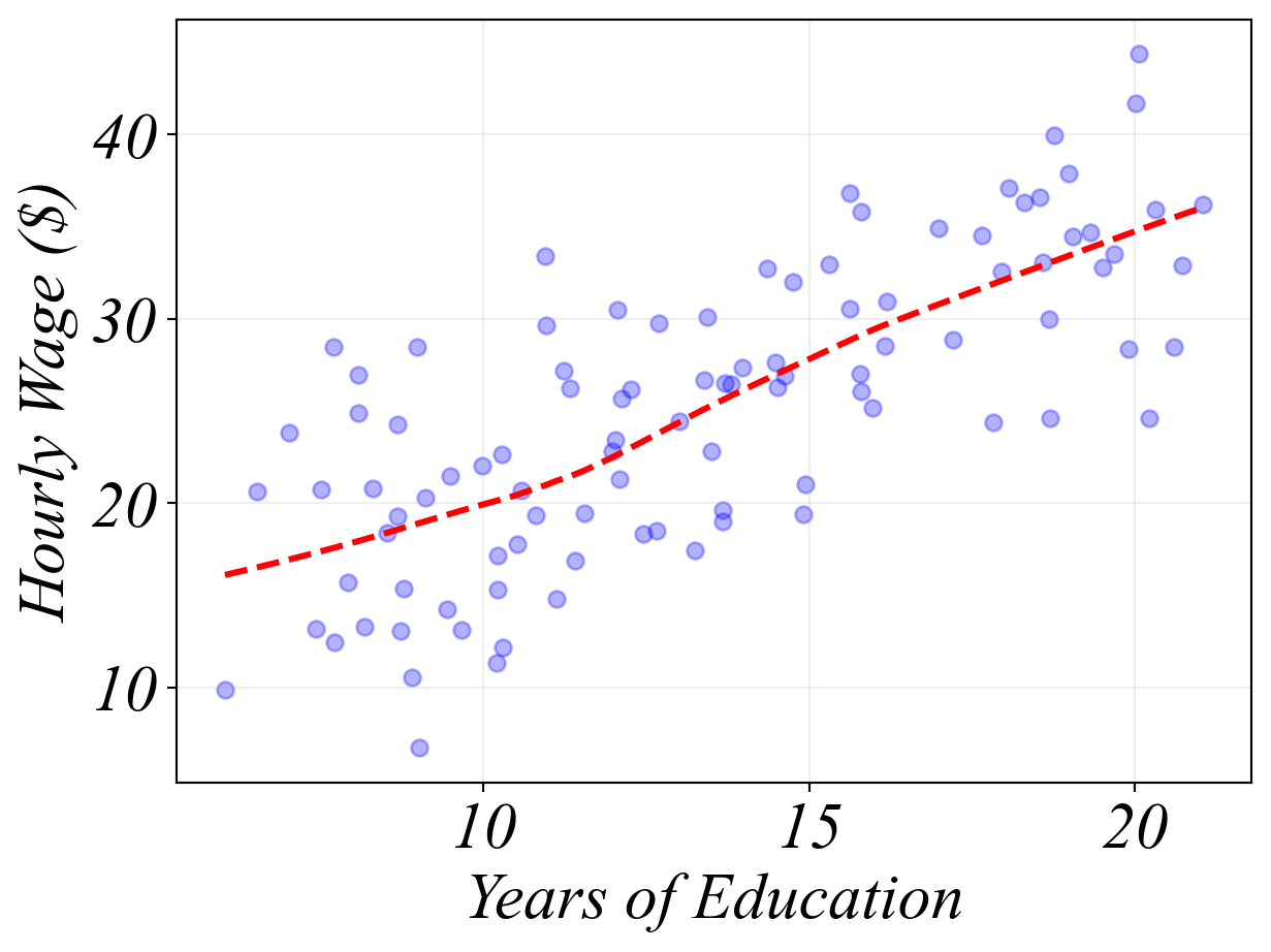 Example: Exploring a relationship - education and wages.