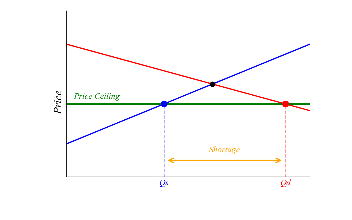A binding price ceiling creates a shortage.