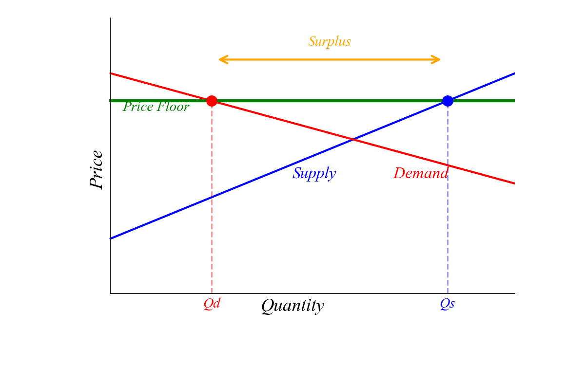 A binding price floor creates a surplus.