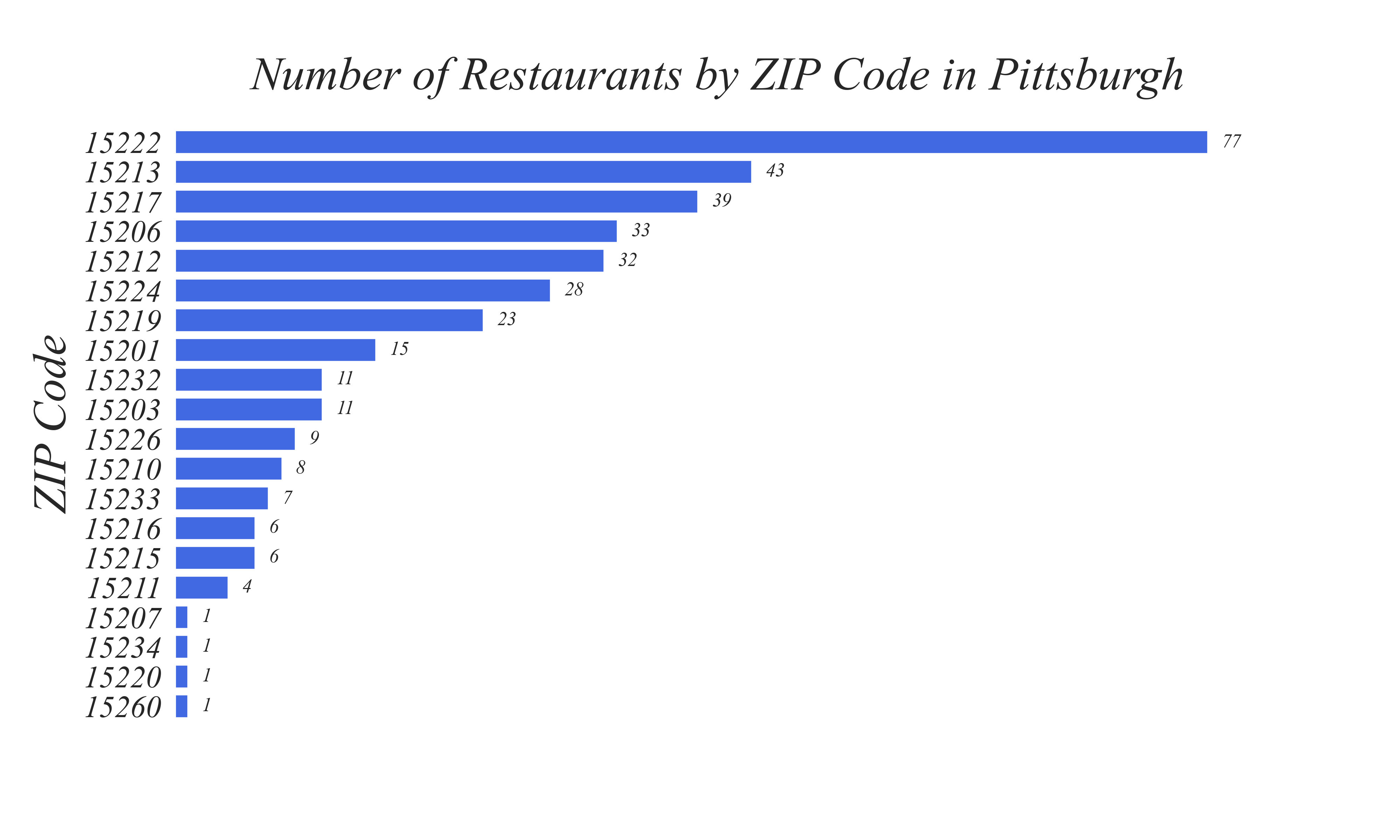 Subquestion 1: how many restaurants are in each Pittsburgh zipcode?