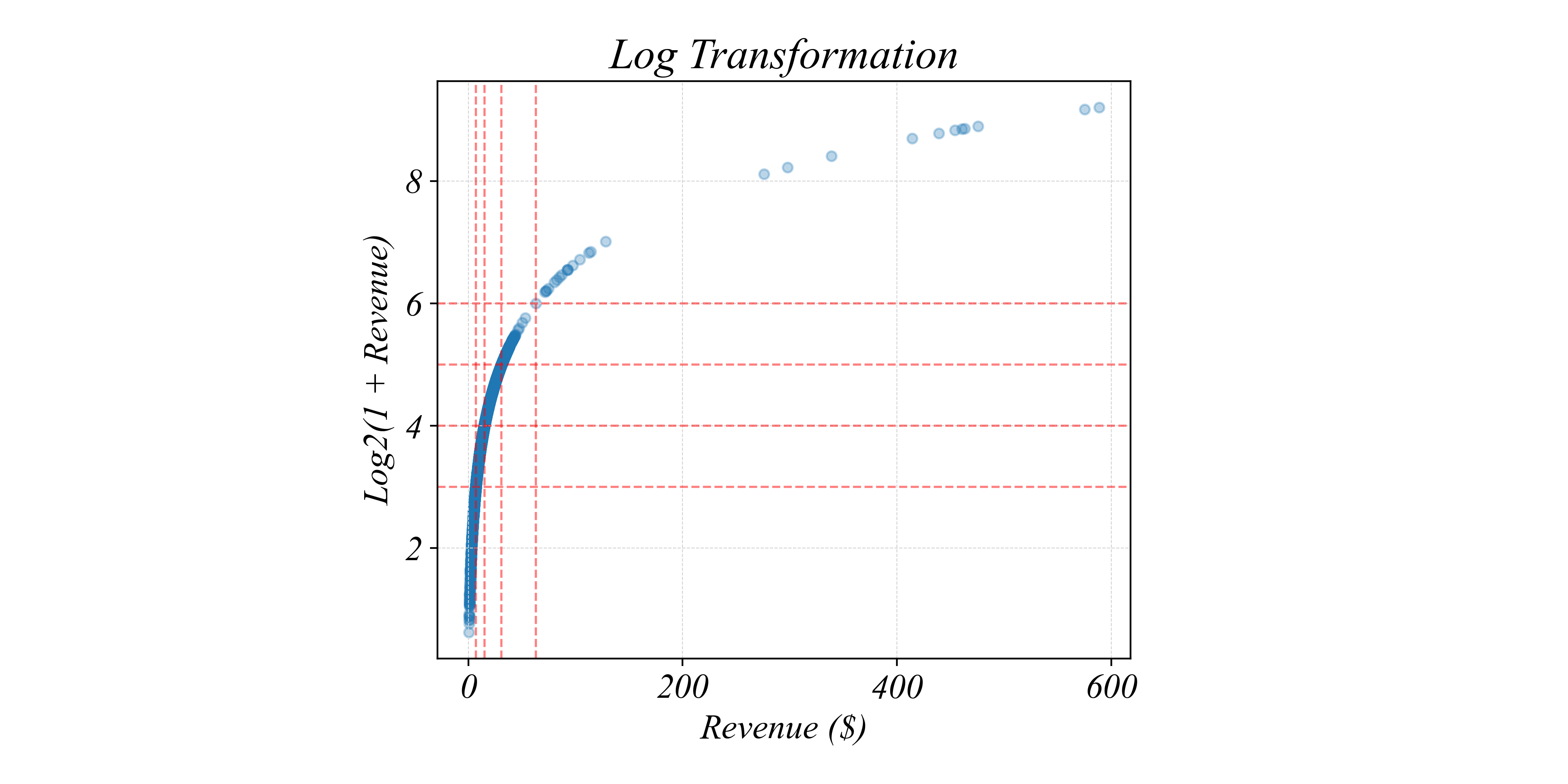 > log2(1+$7) = 3, log2(1+$15) = 4, log2(1+$31) = 5