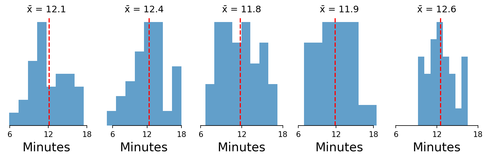 > what do you expect to see when we plot these sample means (\(\bar{x}\))?