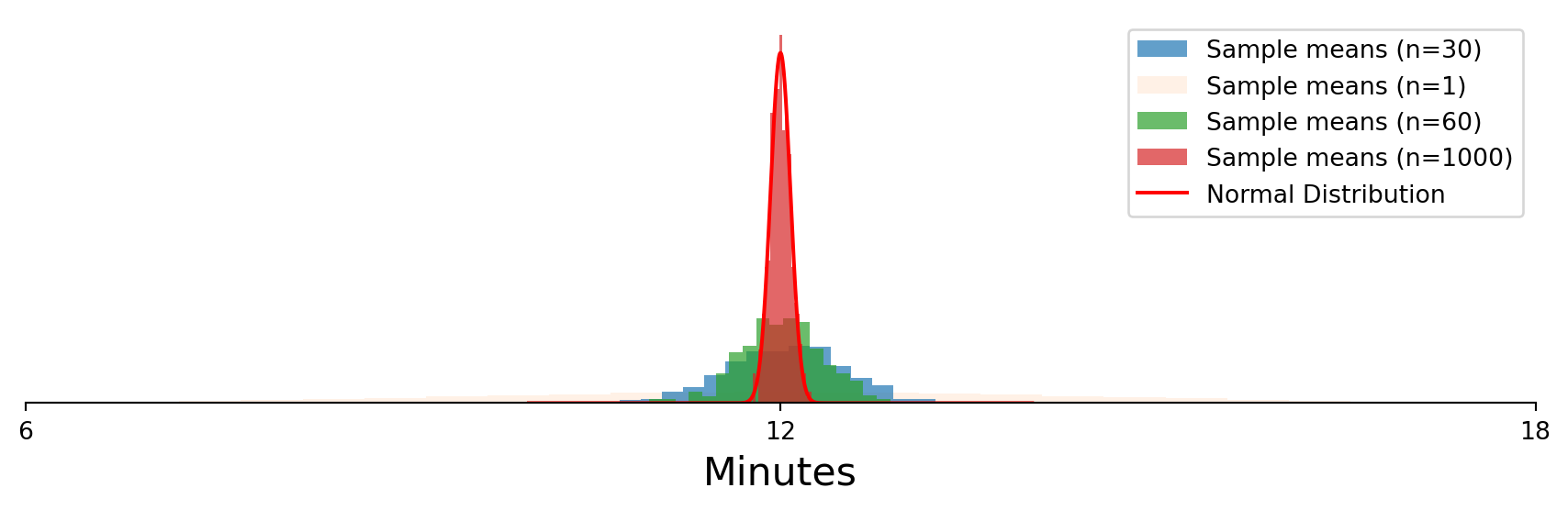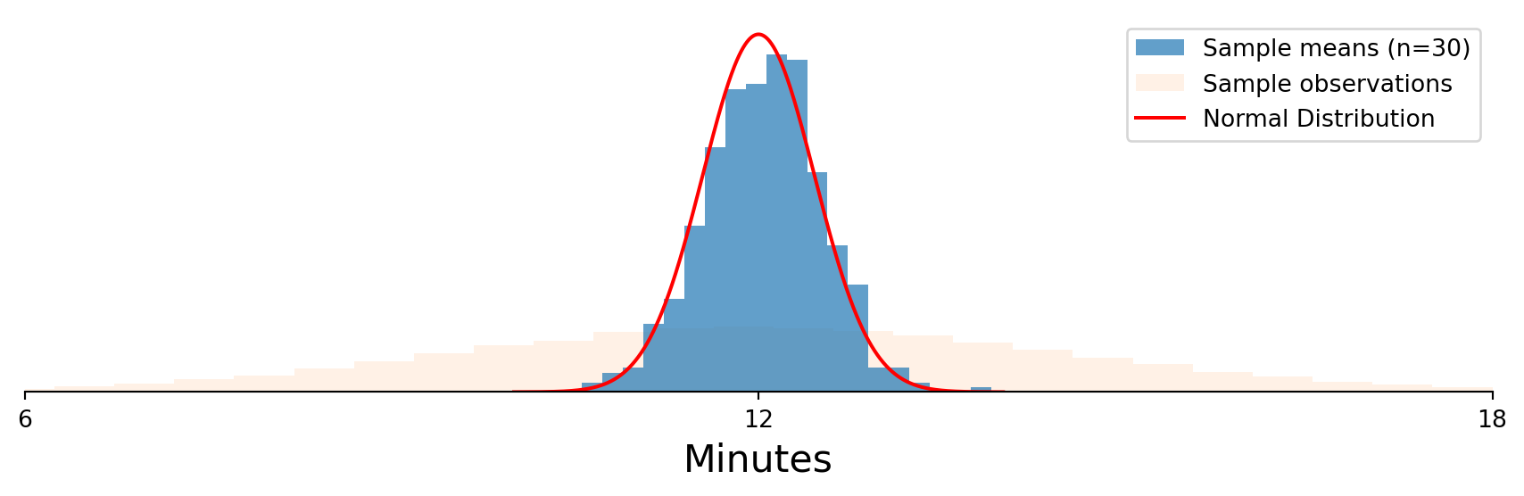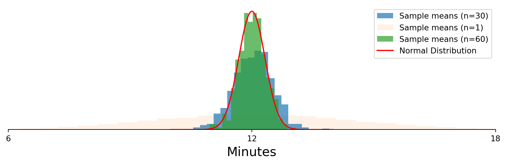 \[\bar{x} \sim N\Big(\mu, \frac{\sigma}{\sqrt{n}}\Big)\]