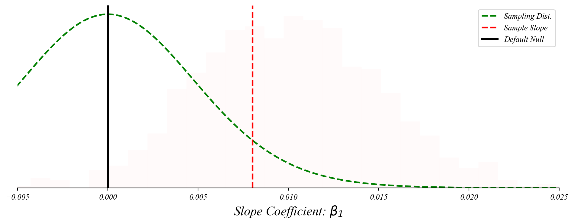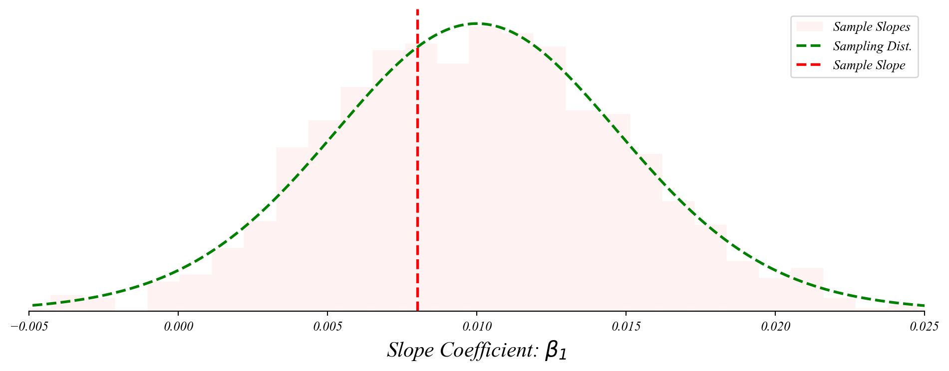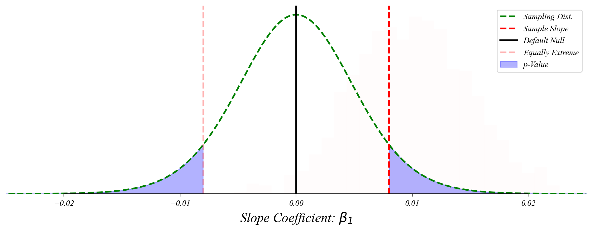 > p-value: the ‘surprisingness’ of our sample if \(\beta_1 = 0\)