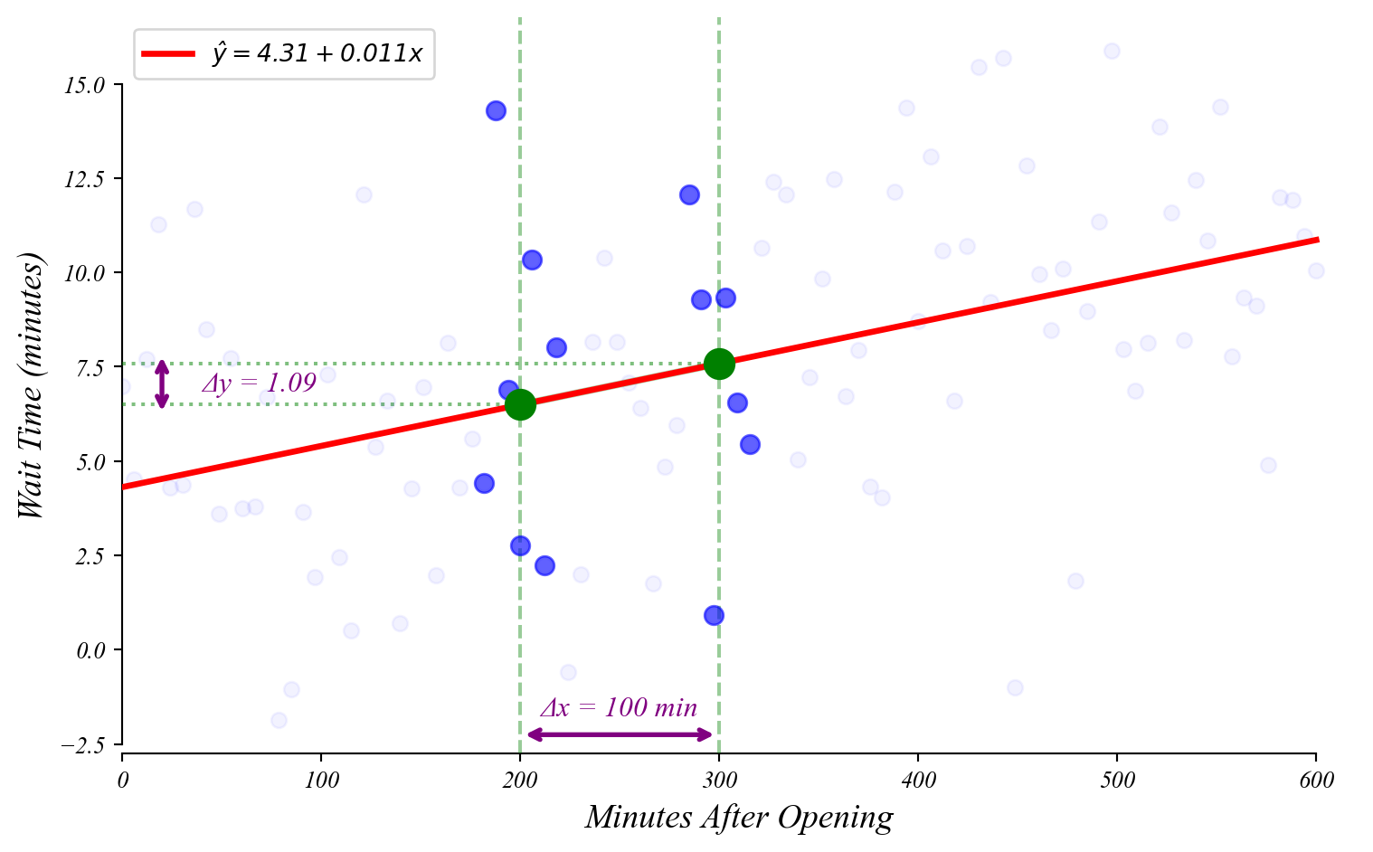 > \(\beta_1\) tells us how much \(y\) increases with every 1 unit increase in \(x\)