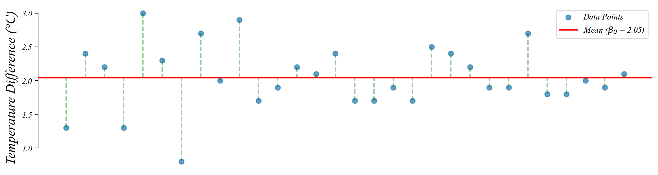 > the intercept \(\beta_0\) is the estimated mean temperature