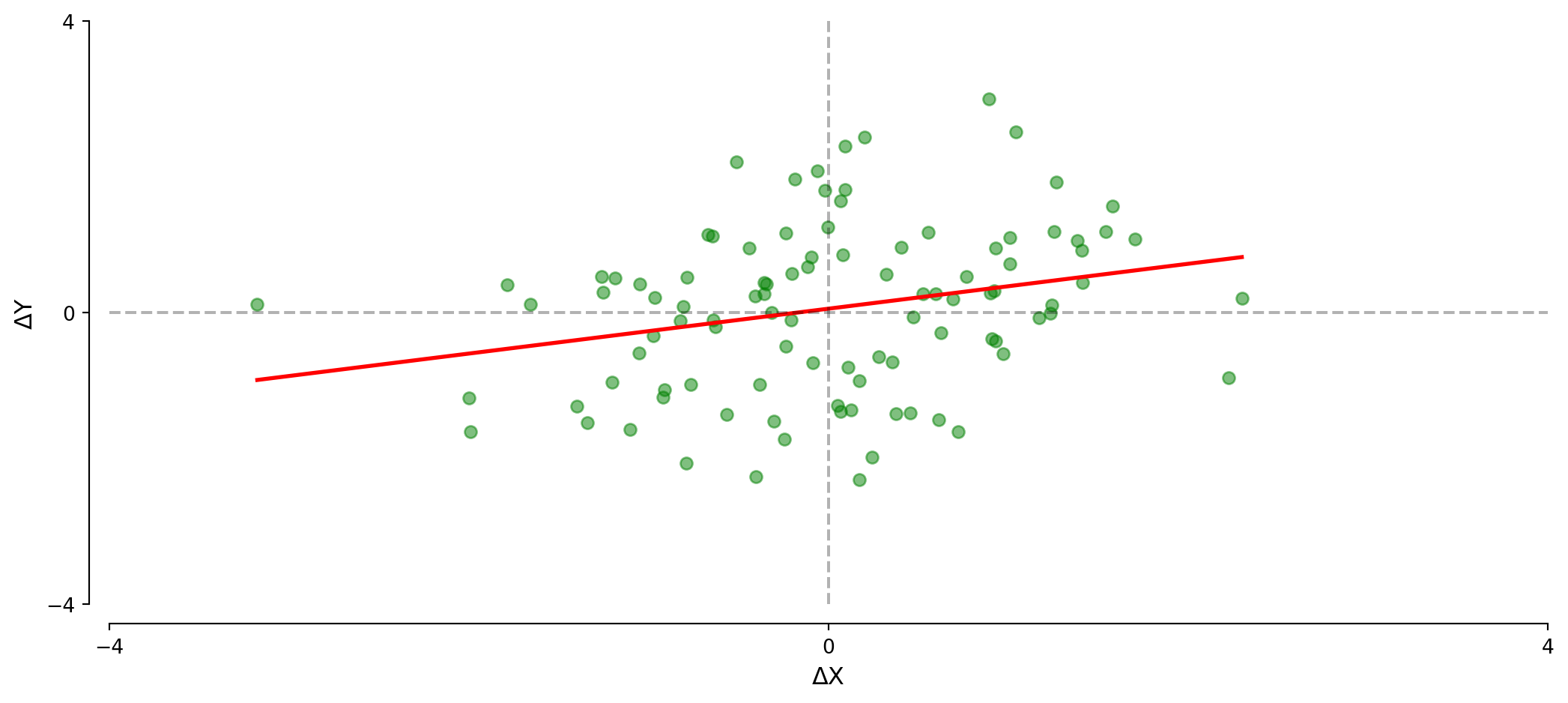 \[\Delta \text{Y}_t = \beta_0 + \beta_1 \times \Delta \text{X}_t + \varepsilon_t\]