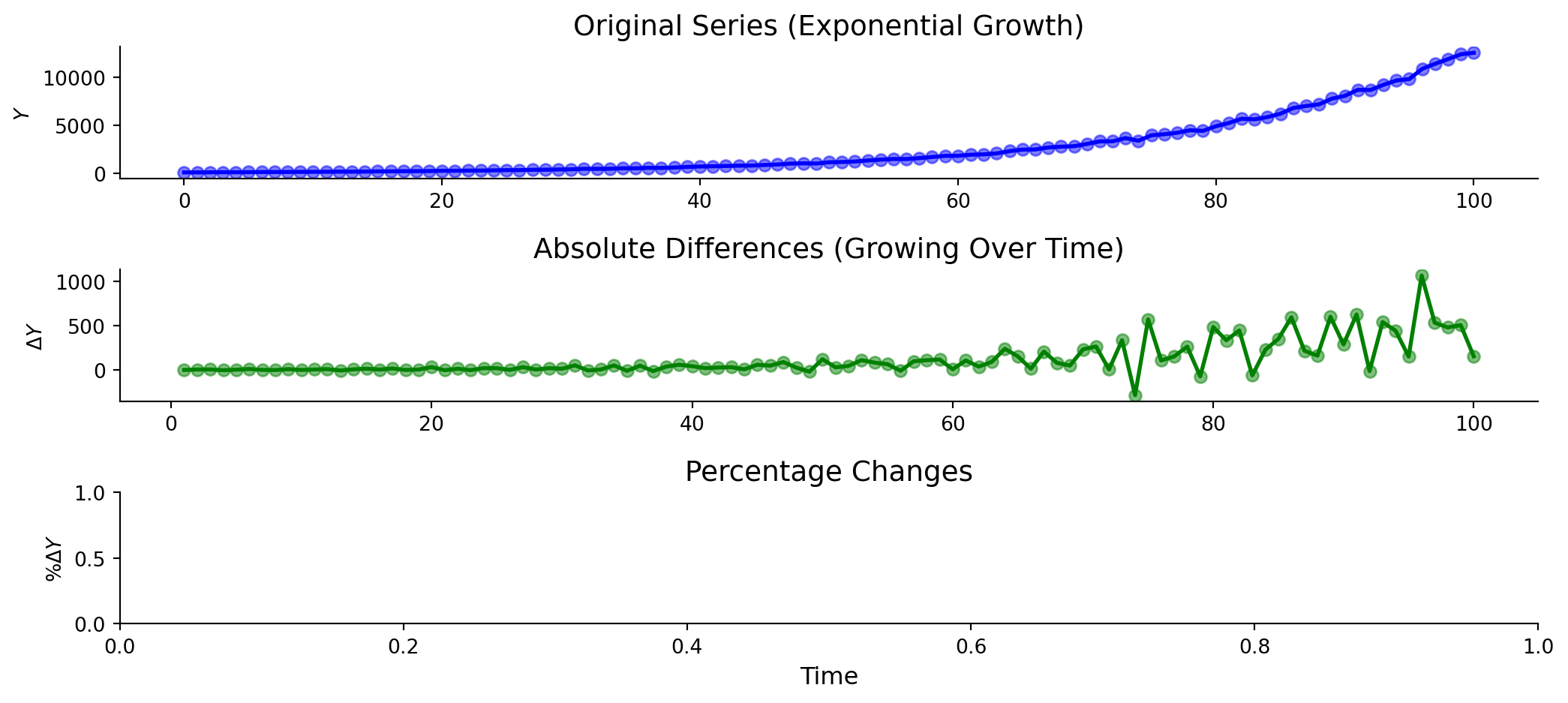# Step 1. Calculate growth rates (percentage changes)