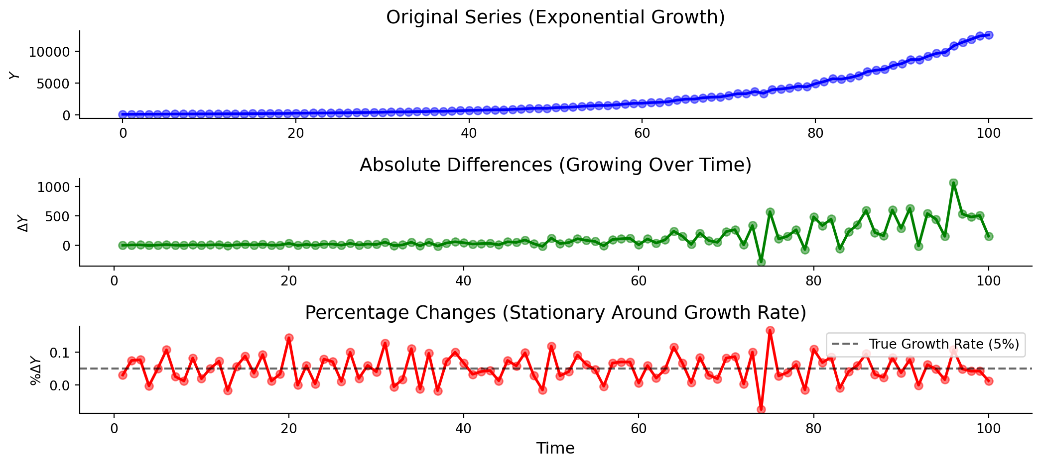 Growth rate models have the advantages of first differences and can scale better.