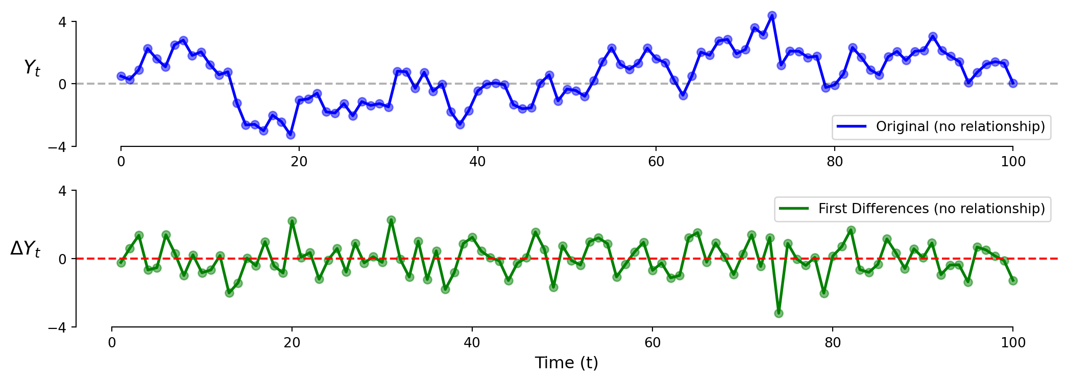 \[\Delta \text{Y}_t = \text{Y}_t - \text{Y}_{t-1}\]
