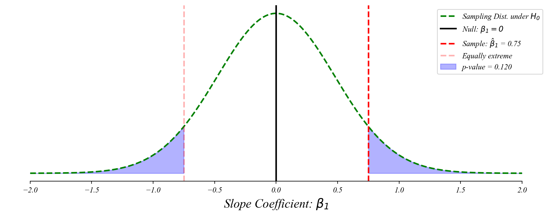 a) Draw the sampling distribution of \(\beta_1\) under the null hypothesis.