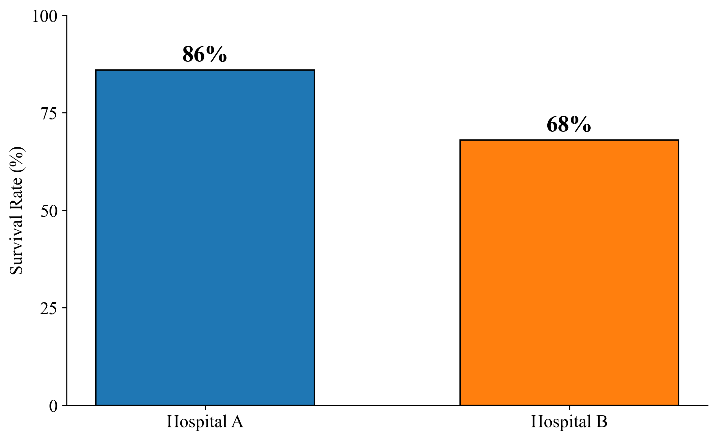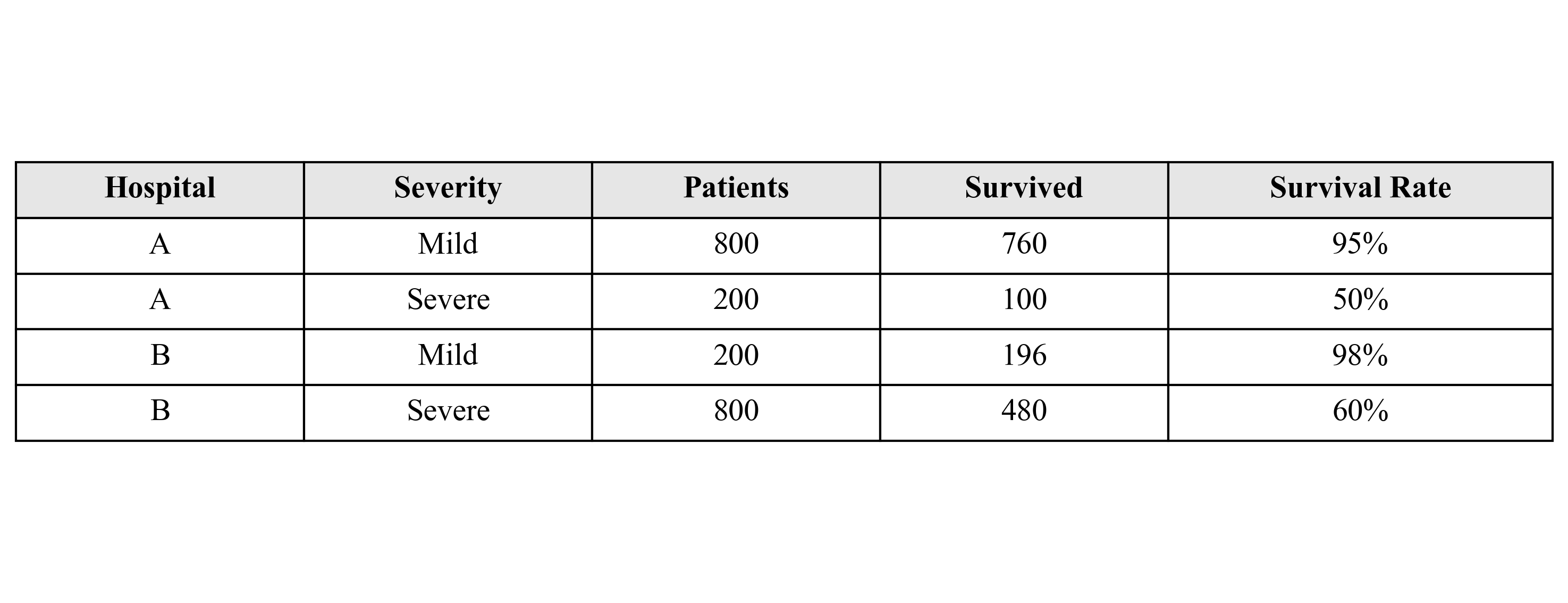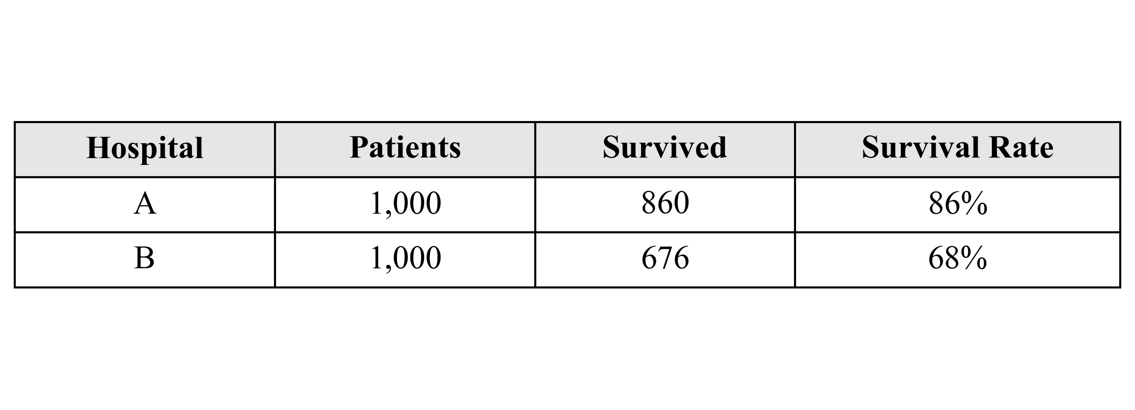 Hospital A has a higher survival rate, seems like the obvious choice.