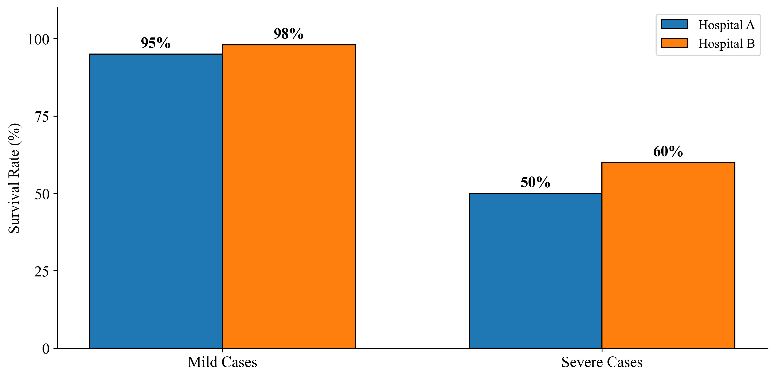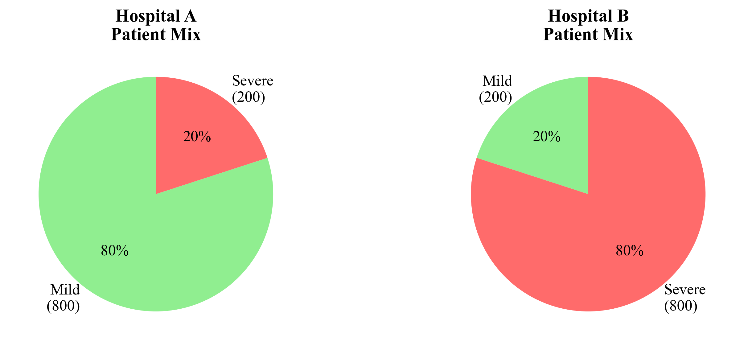 Hospital A treats mostly mild cases, Hospital B treats mostly severe cases.