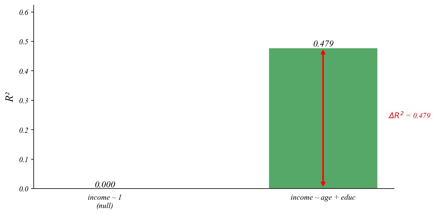 Numerator: average R² gain per variable.