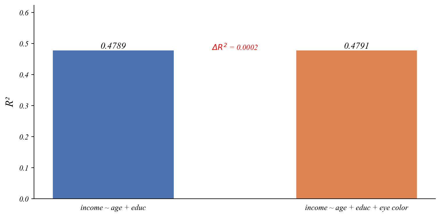 Measuring the size of the R² improvement relative to noise.