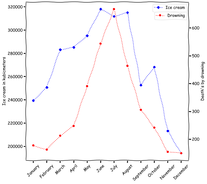 The relationship between ice cream and drowning is spurious.
